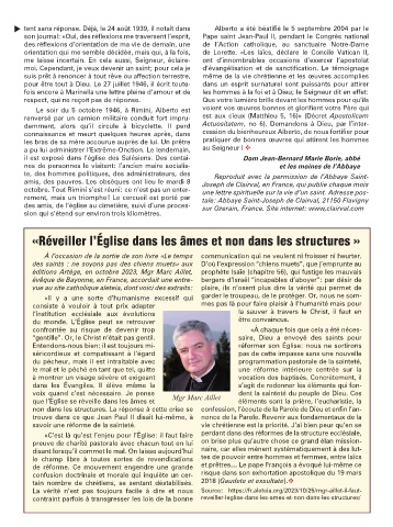 il est exposé dans l’église des Salésiens. Des centai- Dom Jean-Bernard Marie Borie, abbé
