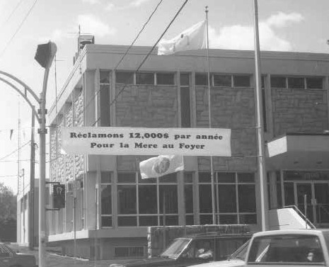 • À Montréal, décembre 1988, 18 000 pétitions sont signées. Le journal La Presse écrit: « …les Bérets Blancs accrochent et distribuent partout des banderoles “Réclamons 12 000 $ par année pour la mère au foyer… »