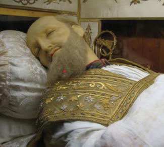 | Ancienne statue de cire de saint François de Sales au couvent des Soeurs de la Visitation à Annecy |