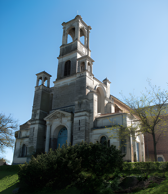 | L’église paroissiale de Montfort-sur-Meu, d’abord dédiée à saint Jean-Baptiste, puis à saint Louis-Marie Grignion de Montfort |
