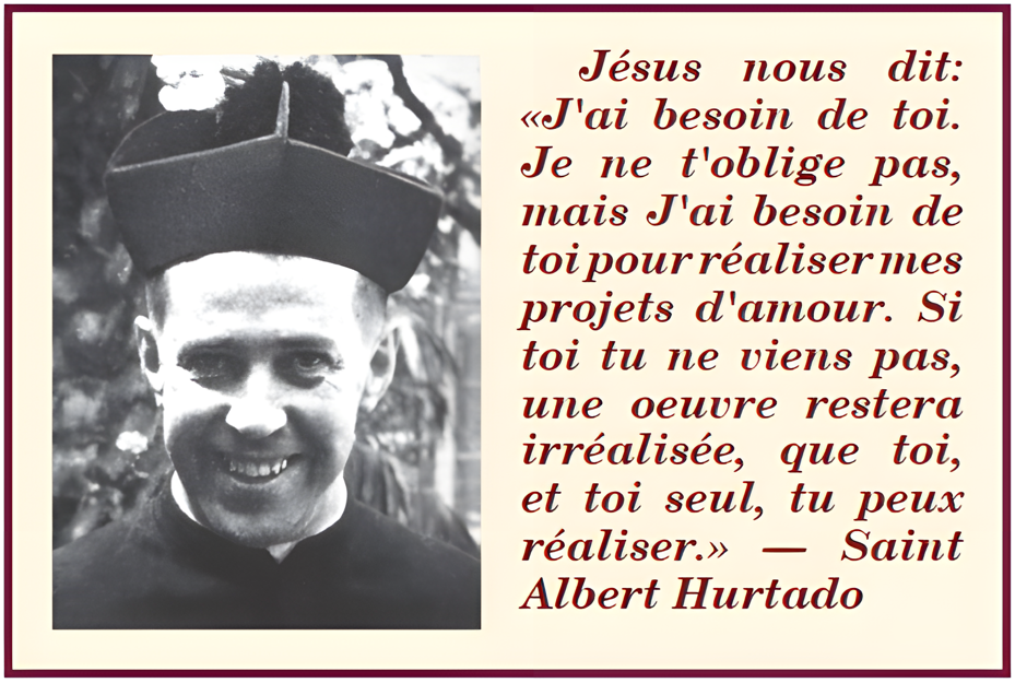 Lors de son voyage au Chili en 1987, le Pape Jean- Paul II prononça ces paroles pleines d'espérance: «Le Saint-Esprit pourra-t-il susciter de nos jours des apôtres de l'envergure du Père Hurtado, qui manifestent la vitalité de l'Église par leur héroïque témoignage de charité? Nous en sommes convaincus et le lui demandons avec foi».