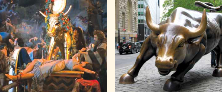 On s’est créé des idoles nouvelles. L’adoration de l’antique veau d’or (cf. Ex 32, 15-34) a trouvé un visage nouveau et impitoyable dans le fétichisme de l’argent, et dans la dictature de l’économie sans visage, ni but vraiment humain. La crise mondiale qui touche les finances et l’économie semble mettre en lumière leurs difformités, et surtout la grave déficience de leur orientation anthropologique qui réduit l’homme à une seule de ses nécessités: la consommation.