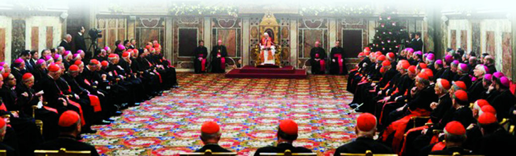 Chaque année, quelques jours avant Noël, le Pape Benoît XVI rencontre les membres de la curie romaine pour présenter ses voeux, ce qui lui donne l’occasion de s’entretenir sur l’état actuel de l’Église et du monde. L’année dernière, dans son discours du 20 décembre 2010, le Saint-Père a eu recours à des paroles très fortes pour décrire la gravité de la situation, et a comparé les temps actuels avec le déclin de l’Empire romain. Voici des extraits du discours du Saint-Père :