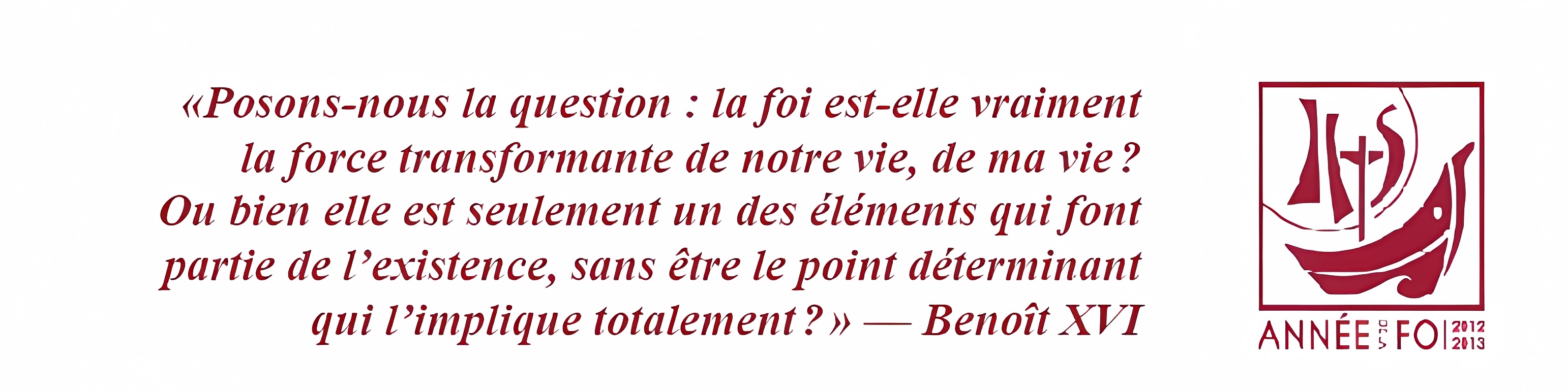 Le chrétien, souvent, ne connaît pas même le noyau central de sa foi catholique, du Credo, au point de laisser la place à un certain syncrétisme et à un relativisme religieux, sans idée claire sur les vérités à croire et sur la singularité salvifique du christianisme. Nous ne sommes pas si loin du risque de construire, pour ainsi dire, une religion «à la carte». Il faut, au contraire, nous tourner vers Dieu, le Dieu de Jésus-Christ, il faut que nous redécouvrions le message de l’évangile, que nous le fassions entrer plus profondément dans nos consciences et notre vie quotidienne.