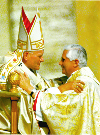 Jean-Paul II avec son proche collaborateur, le cardinal Ratzinger (futur Benoît XVI)