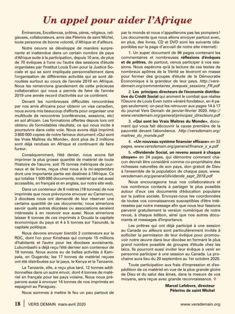 nous avons mis beaucoup d'efforts pour organiser une du journal Vers Demain de janvier-février 2020. http://