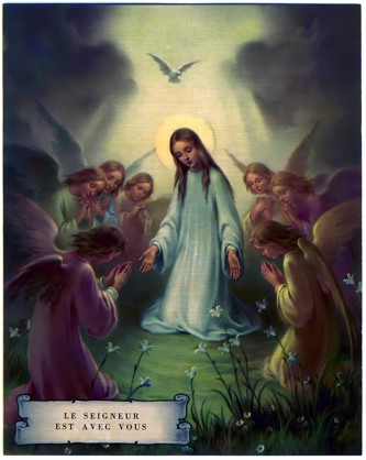 Et alors Marie va être fécondée de la parole. La parole que l’ange a reçue, est accueillie par Marie. C’est cette Parole que Marie va féconder pour nous l’enfanter, la Parole qui était auprès de Dieu, la Parole qui s’est fait chair et nous avons vu sa gloire, la gloire qui habite parmi nous. Il est venu parmi les siens et les siens ne l’ont pas reconnu. Demandons à Marie, à sa suite, à son école, d’accueillir sa Parole comme elle l’a fait.