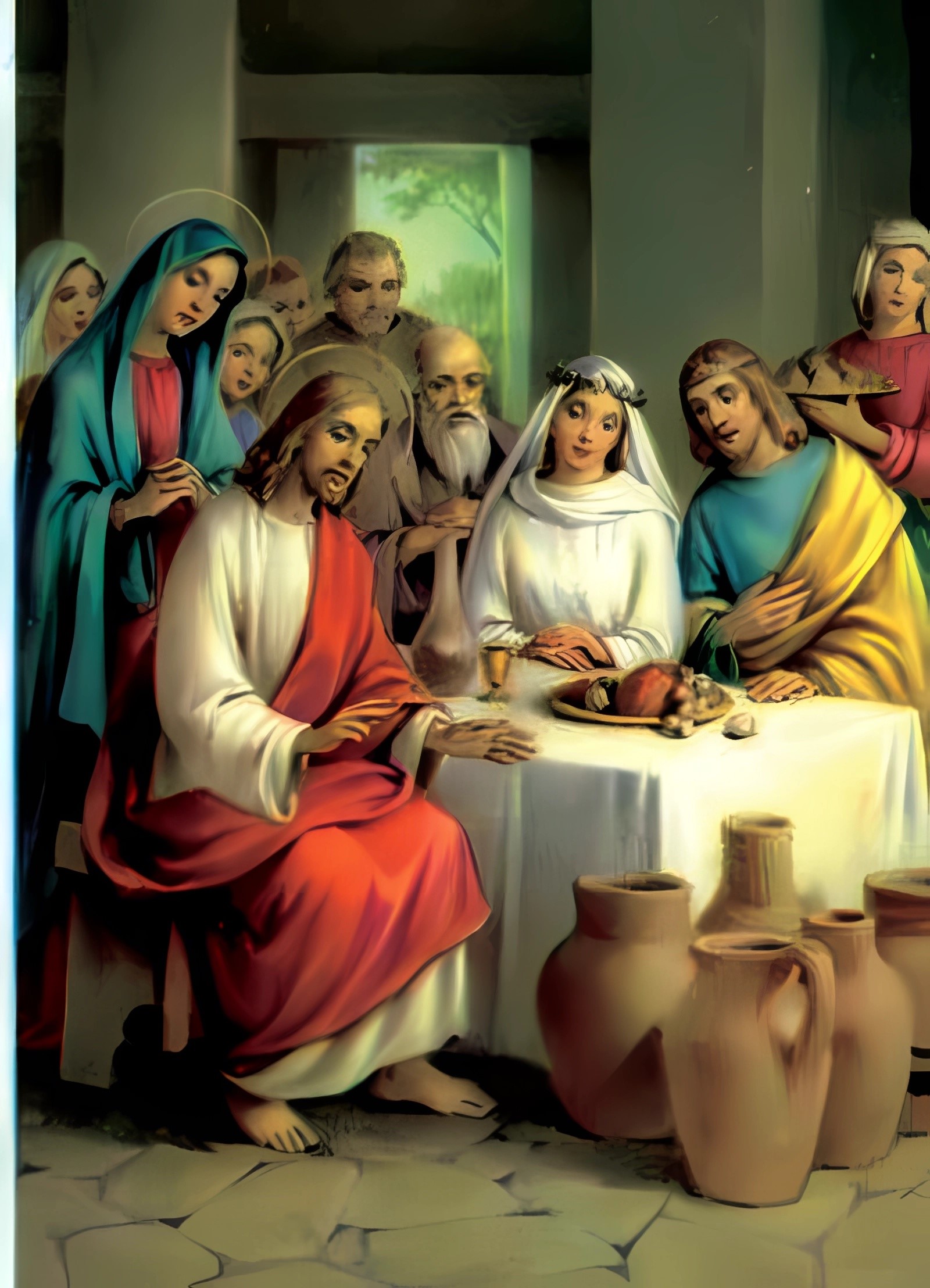 Deuxième chose, c’est le récit des noces de Cana où Marie sera au cœur. Elle n’est pas à l’extérieur de la scène, elle est au cœur puisqu’elle-même est l’invitée. Elle est là, mais elle n’est pas là insensible à ce qui arrive. Elle est là comme au coeur même de nos indigences car ce ne sont pas les époux qui sont partis pour aller voir le Seigneur, c’est plutôt Marie qui ira dire à son Fils: «Ils n’ont plus de vin». Si nous mettons Marie dans nos vies, au cœur de nos indigences, Marie est celle qui peut intervenir pour nous avant même que nous sentions le besoin de le faire, avant même que nous puissions peut-être aller chercher des comprimés antidépresseurs ou aller voir les psychologues.