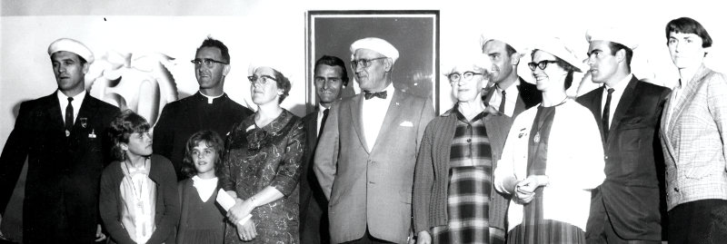 Les frères et sœurs de Léola Albert, ainsi que ses parents, tous créditistes, lors de notre congrès de 1967. De gauche à droite: Armand, ses filles Lucie et Hélène, le Père Fernand, Léola, le Frère Ernest, les parents – Jérôme et Christine, Jean-Paul, Gertrude, Adalbert et Jeanne. Ne paraissent pas sur la photo: Raymond, Sœur Hilda et Livio.
