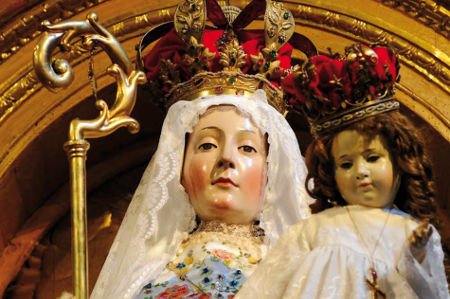 La statue miraculeuse de Notre-Dame du Bon Succès, terminée par les anges, dans la chapelle des Soeurs de l’Immaculée Conception à Quito.