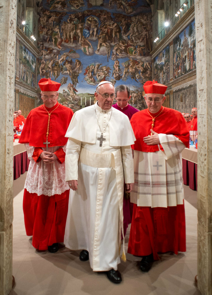 Le 13 Mars 2013, après le cinquième scrutin du conclave, le cardinal Jorge Mario Bergoglio reçoit plus des deux-tiers des votes, et succède ainsi à Benoît XVI pour devenir le 266e Pape. Aussitôt connus les résultats de ce vote, le cardinal Bergoglio doit répondre aux deux questions rituelles qui marquent la fin du conclave et la levée du secret: «Acceptes-tu ton élection?» et «Quel nom choisis-tu?»