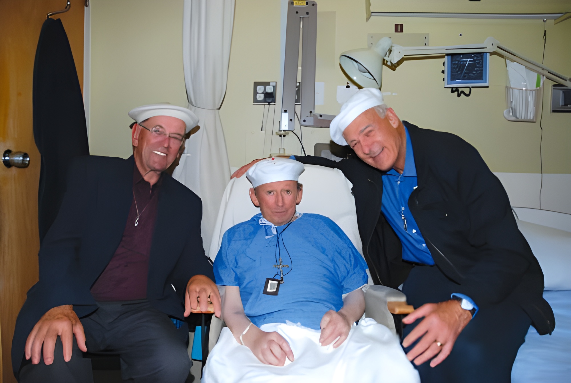 | De nombreux apôtres de Vers Demain sont allés visiter Réjean à l’hôpital. Sur la photo : Gilles Cyr (à gauche) et Robert Roy, deux Pèlerins de St-Jean-Port-Joli. |
