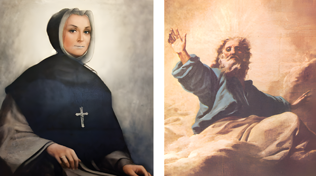 Les fondateurs de Vers Demain ont toujours eu une dévotion spéciale envers sainte Marguerite d’Youville (1701-1771), fondatrice des Soeurs de la charité de Montréal, communément appelées Soeurs Grises. Une peinture de sainte Marguerite d’Youville (photo de gauche) est affiché dans la salle à dîner de la Maison Saint-Michel, tout à côté de l’image du Père Éternel, reproduction d’une peinture faite en 1741 par l’artiste français Challe, à la demande de sainte Marguerite d’Youville. De plus, encore aujourd’hui, à la maisonmère de Vers Demain à Rougemont, nous récitons tous les jours la prière suivante: