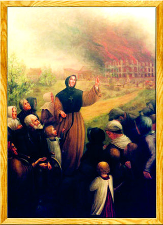 En 1765, un incendie ravage l’hôpital, mais non la foi et le courage de la fondatrice. Elle invite alors ses soeurs et les pauvres à reconnaître le passage du Père Eternel dans cette épreuve et à le louer en chantant le Te Deum. Et comme si elle voyait l’avenir, elle entreprend, à 64 ans, la reconstruction de ce refuge des gens malades et démunis.