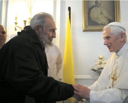 Photo: Après la messe, avant son départ de Cuba, le Saint-Père a rencontré à la nonciature apostolique l’ancien président Fidel Castro (maintenant âgé de 86 ans, soit un an de plus que le Saint-Père).